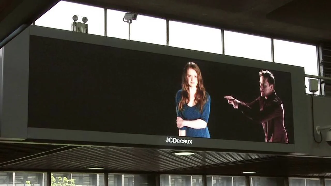 This interactive poster for the National Centre for Domestic Abuse encouraged passers-by to drag the abusive man away using their mobile phones. Users could either enter the website address or scan on the QR code to start interacting immediately.
